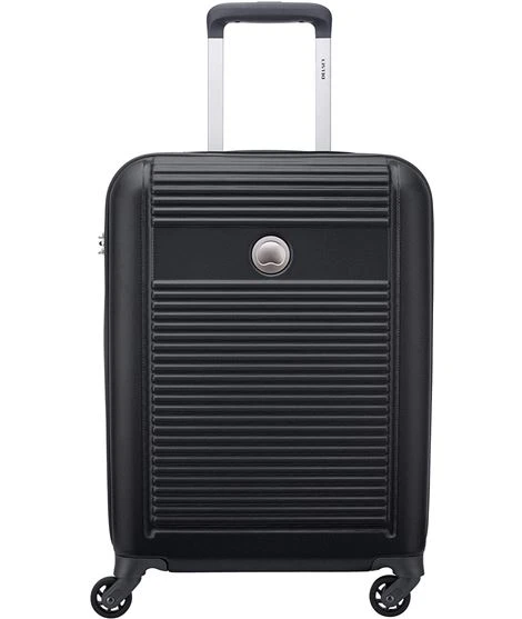 Maleta mediana fabricada en ABS y en color negro de la marca Delsey y modelo Isobare muy resistente, con un interior que está forrado con estampado. La maleta tiene un compartimento principal con cierre de cremalleras en ambas direcciones, separador interior de malla con cremallera, un bolsillo interior también con cremallera y bandas elásticas ajustables a cada lado.